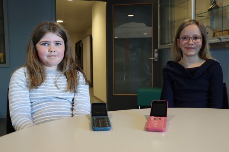 Synne (10) og Signe (11) vil ha ein smarttelefon-fri skule