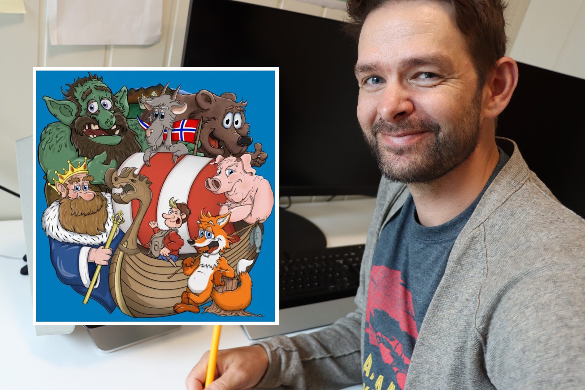 Kai Henrik Brynestad frå Godøya debuterer som bokillustratør denne veka, i boka «Fortellinger om Troll & Magi» frå Kvitre Forlag. Freidig nok krasja han eit forlagsmøte og blei omfamna.