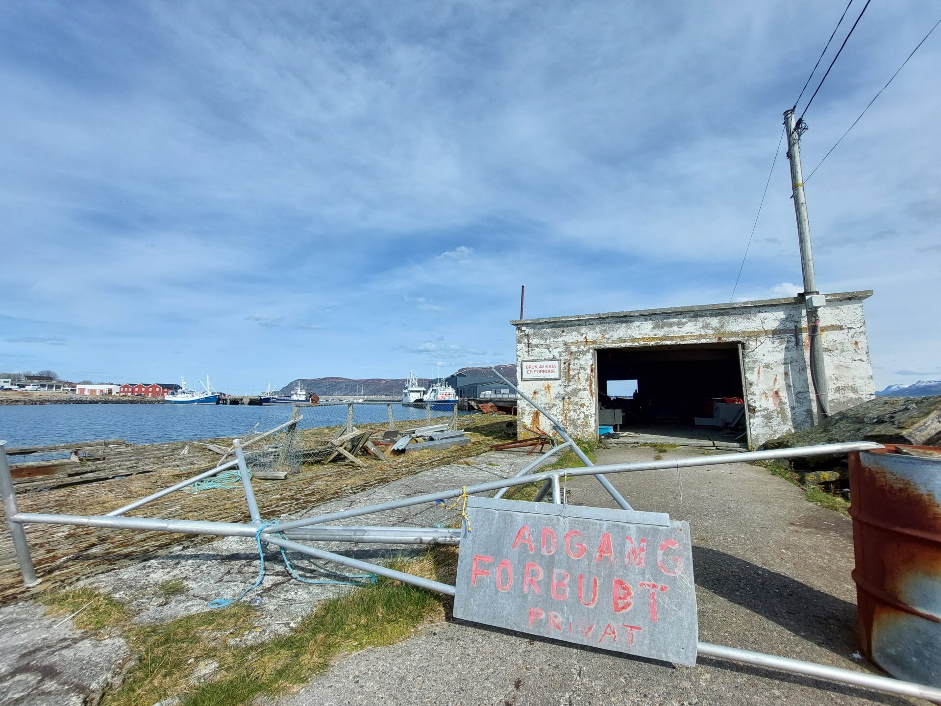 Det flyt over av avfall på og ved kaia ytst på den sørlege moloen på Roald....