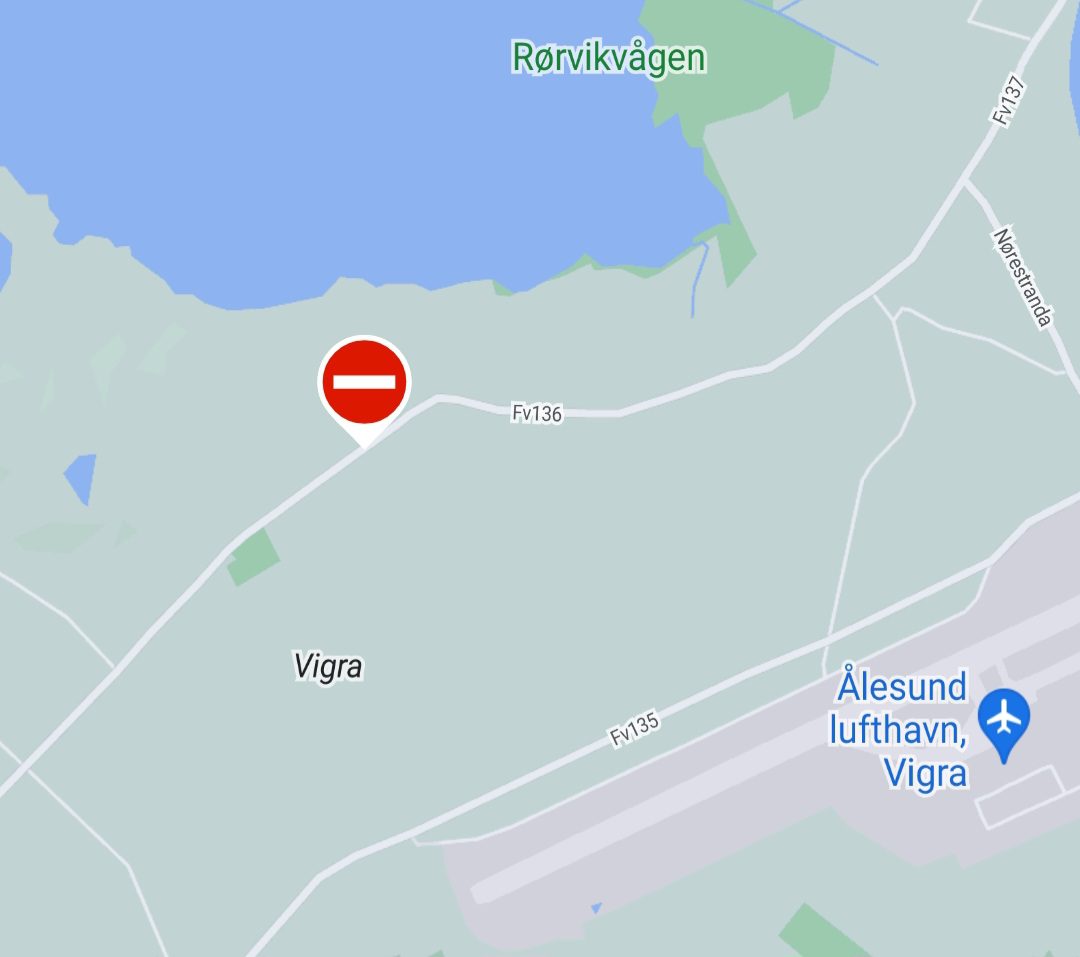 Fv 136 forbi Kølvet på Vigra blei stengt etter ei trafikkulykke fredag.