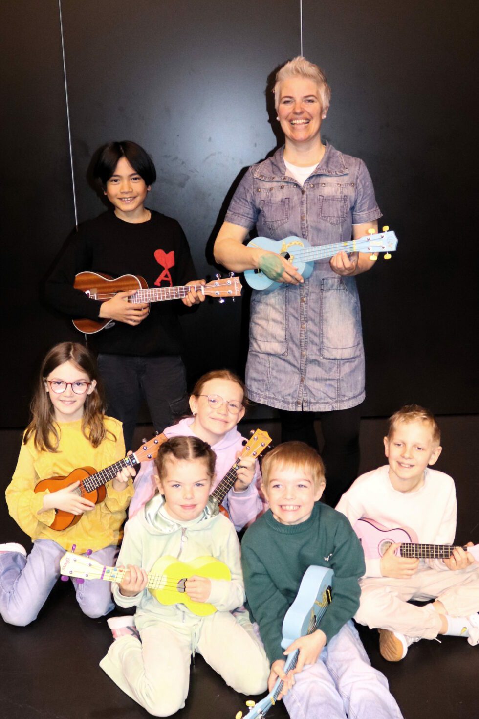 Lyden av ukulelar og song fylte amfiet på Valderøy Barneskule sist torsdag. – Årets høgdepunkt for fellesskap i spel og song, seier musikklærar og ukulele-entusiast Runa Godø Sæther.