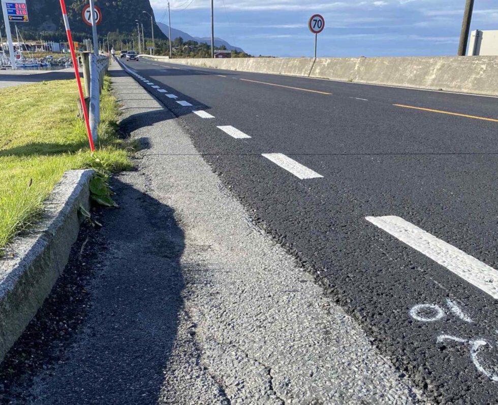 Den nye asfalten på Gjøsundbrua har gjort bilbana jamn og fin, men syklistane er fullstendig gløymde. Sykkelfila er knapt ein meter brei, full av groper og hol, og no med ein farleg kant mot bilfeltet. Resultatet...